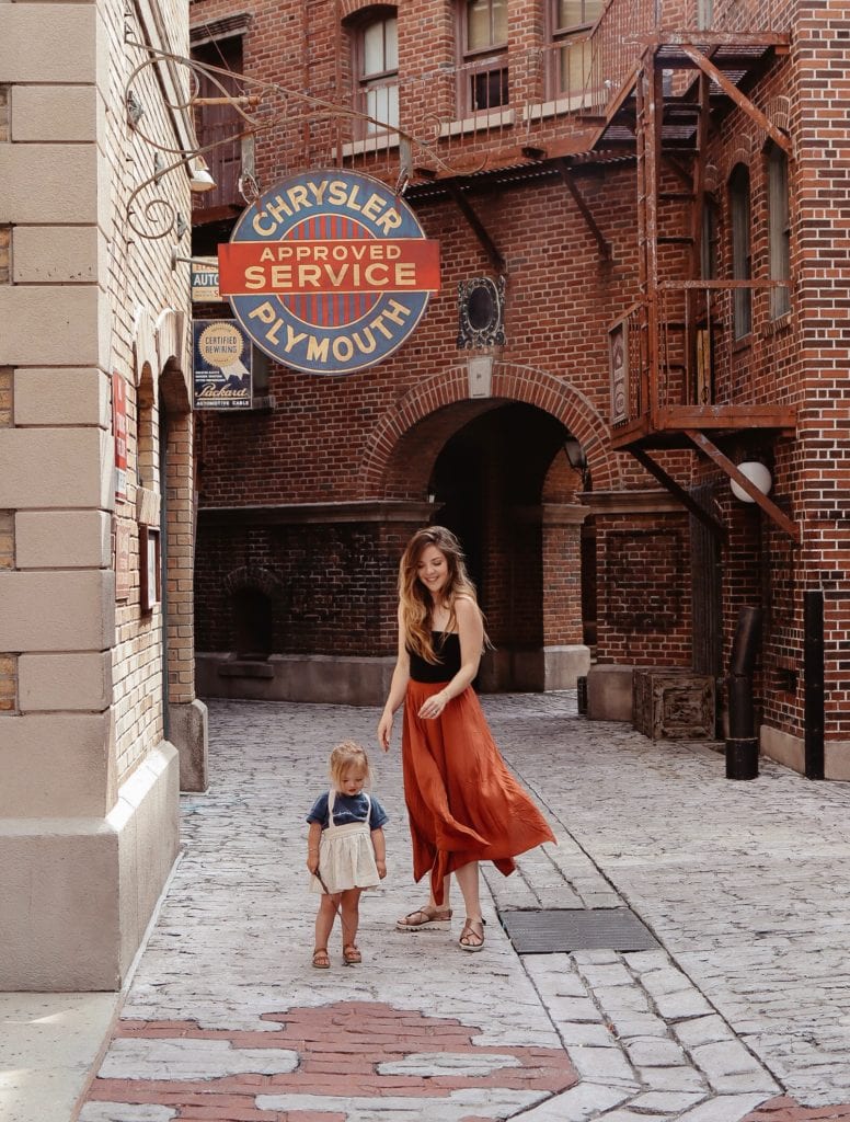 There is a whole section of Universal Studios that is created to look like a city block in Manhattan. It was super cool with lots of vintage looking alley ways and classic signs. There were like ZERO people in here ( except one other curious photo taker who kept getting in our shots.. lol) It was a really cool spot to let the kids explore and snap some cute shots!